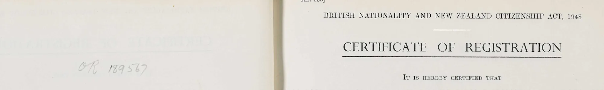 Certificates of Registration under the Immigration Restriction Acts, for 1900 to 1957 [CAHJ 28620], used to grant re-entry into New Zealand for immigrants travelling outside of the country.